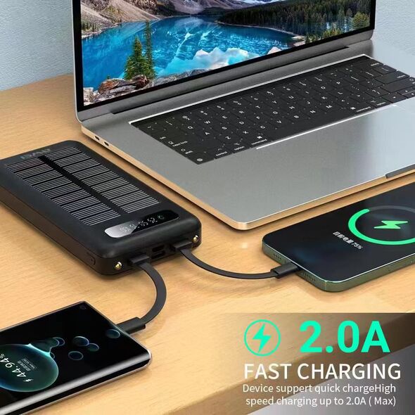 Συνοδεύεται από 3 καλώδια φόρτισης Lightning - MicroUSB - Type-C, τα οποία ύστερα κουμπώνουν και αποθηκεύονται στο πίσω μέρος του Power Bank. Έτσι, δεν θα χρειαστεί να ξαναθυμηθείτε να φέρετε δικά σας καλώδια για κάθε συσκευή σας!