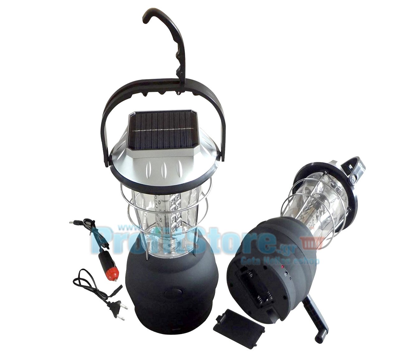 Ηλιακό Φανάρι - Φωτιστικό Camping Ρεύματος, Μπαταρίας, Μανιβέλας με 36 LED 12V Αυτοκινήτου & 220V