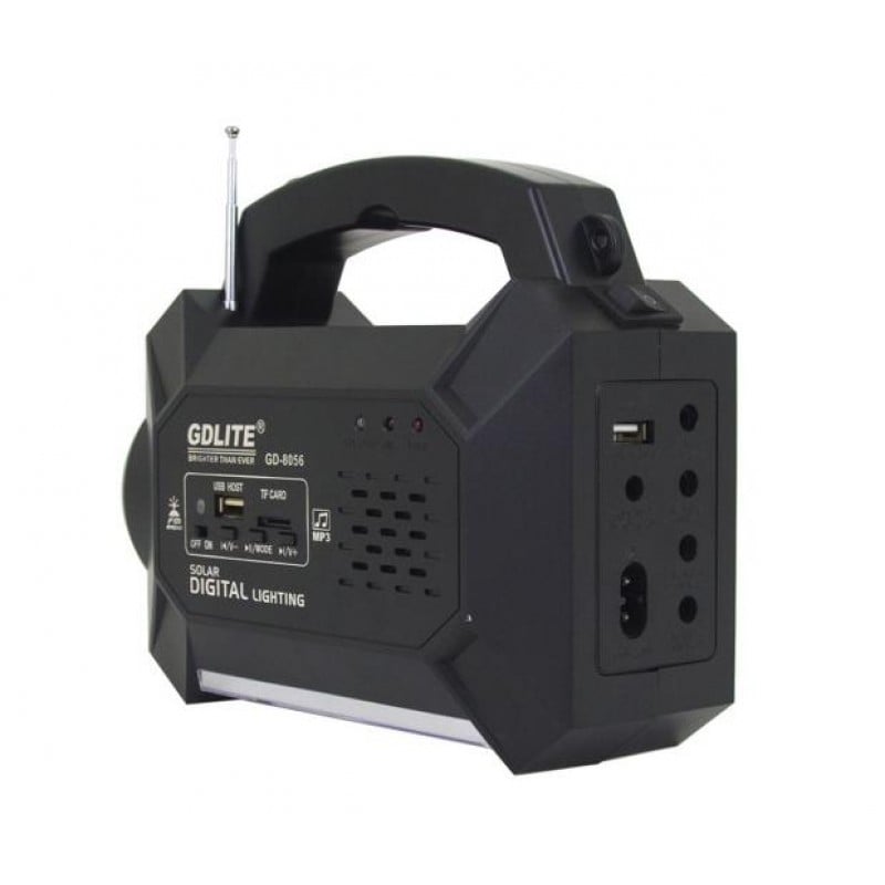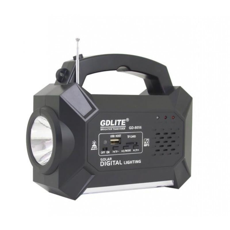 Πλήρες ηλιακό σύστημα φωτισμού για να φωτίσετε τον χώρο σας εντελώς δωρεάν! Διαθέτει ηλιακό panel που φορτίζει την ενσωματωμένη μπαταρία στην κύρια μονάδα, η οποία διαθέτει ισχυρό φακό εστιασμένη δέσμης (ορατός από πολύ μακριά) και φωτιστικό διάχυτου φωτισμού, ηχείο με ραδιόφωνο, Mp3 / USB / SD Player, φορτιστή κινητών & USB συσκευών καθώς και 3 ισχυρούς λαμπτήρες LED 6V 100 Lumens.