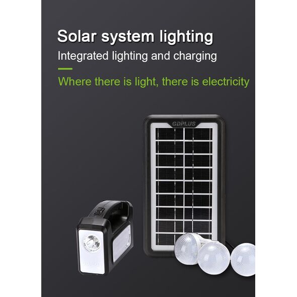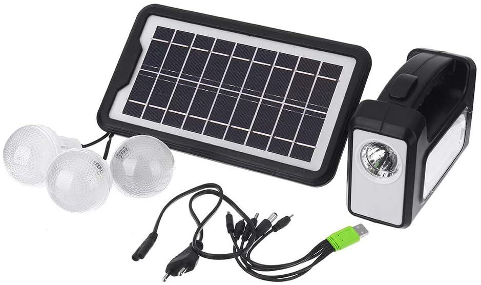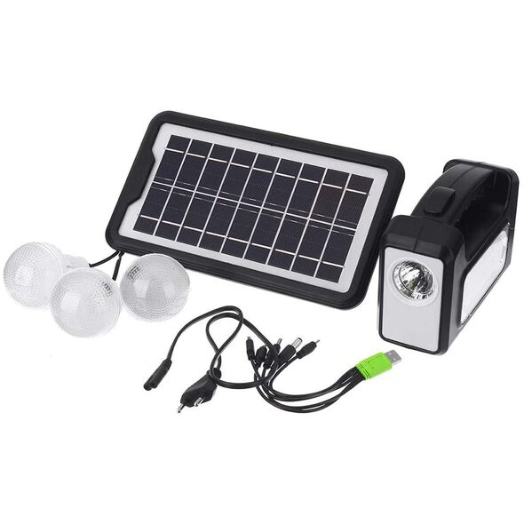 - Στη συσκευασία συμπεριλαμβάνονται: ηλιακό panel, 3 LED λάμπες, κύρια μονάδα/μπαταρία με φακό - φωτιστικό LED, πλεξούδα με καλώδια USB, καλώδιο φόρτισης από πρίζα 220V