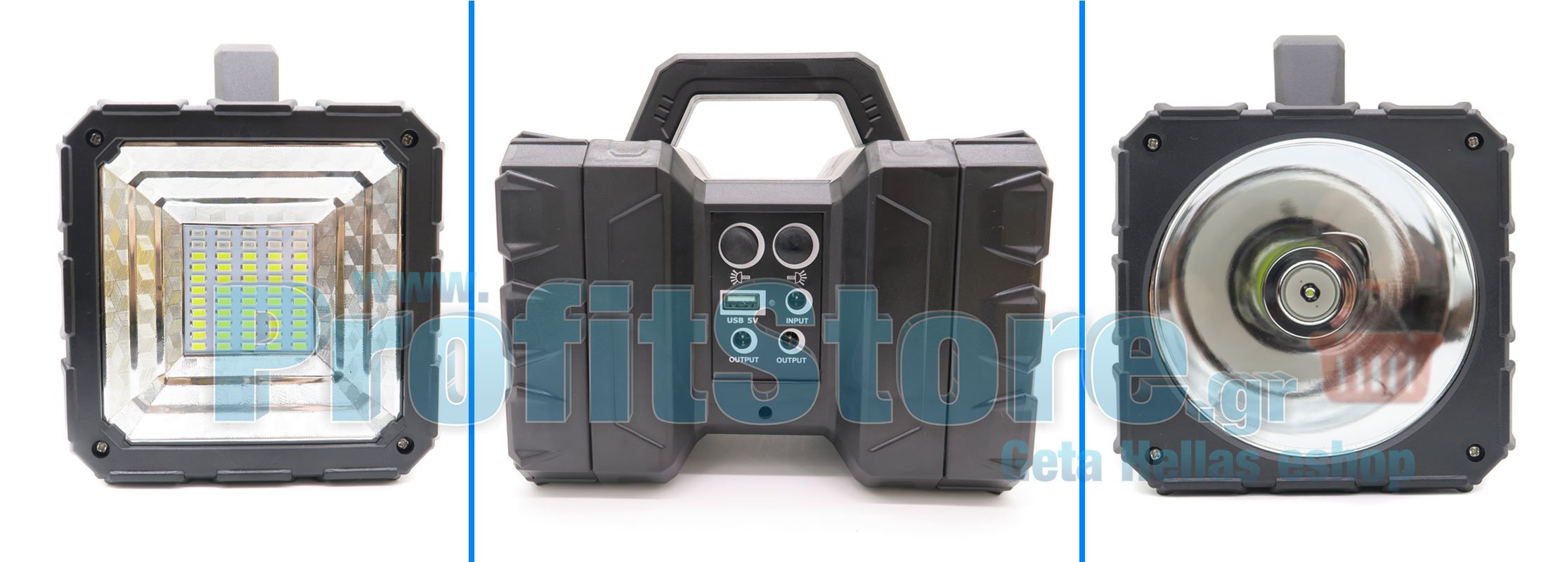 Η κύρια μονάδα είναι ένας πανίσχυρος φακός - προβολέας 500 Lumens που μπορεί να φωτίσει μέχρι και 500 μακρυά, ενώ διαθέτει και ισχυρό φωτιστικό LED υψηλής διάχυτης φωτεινότητας επίσης 500LM! Ταυτόχρονα είναι μικρή και φορητή, ιδανική για χρήση σε εσωτερικό αλλά και σε εξωτερικό χώρο, ενώ ενσωματώνει μεγάλης χωρητικότητας μπαταρία λιθίου