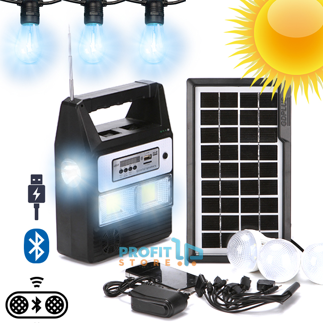 Το ηλιακό αυτό κιτ είναι μια πλήρης λύση για τον φωτισμό του χώρου σας, την φόρτιση και την τροφοδοσία πολλών καθημερινών USB συσκευών σας, όπως το κινητό σας τηλέφωνο και ταυτόχρονα είναι και ένας ισχυρότατος φορητός φακός/φωτιστικό με δυνατότητα να παίζει μουσική από USB sticks, κάρτες μνήμης microSD ή από το ενσωματωμένο FM ραδιόφωνο.