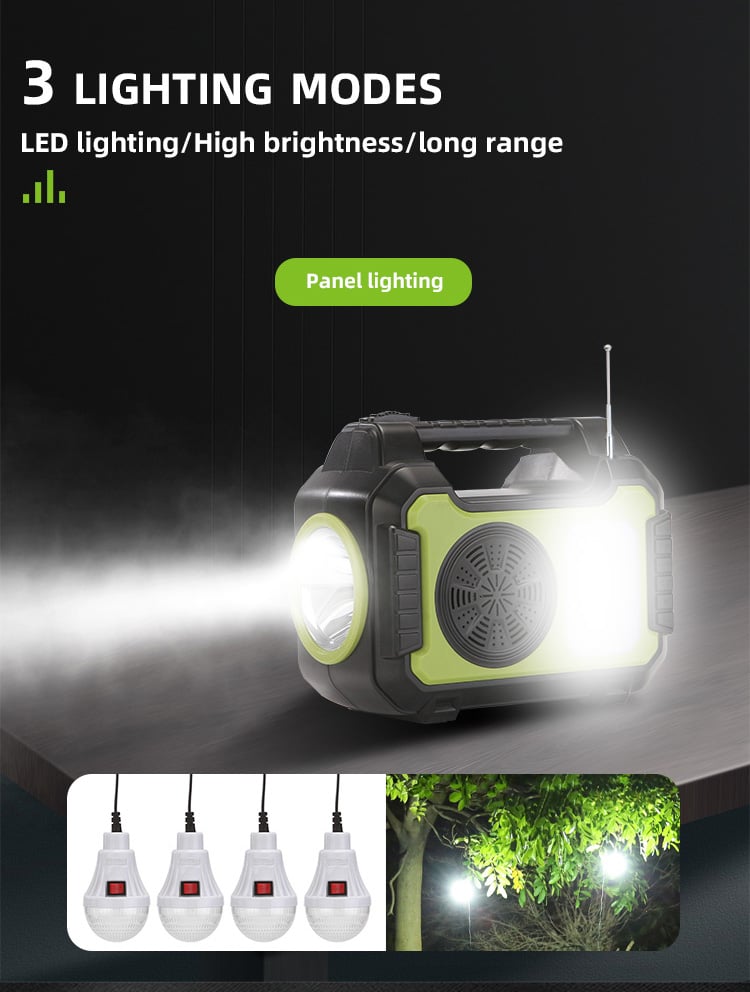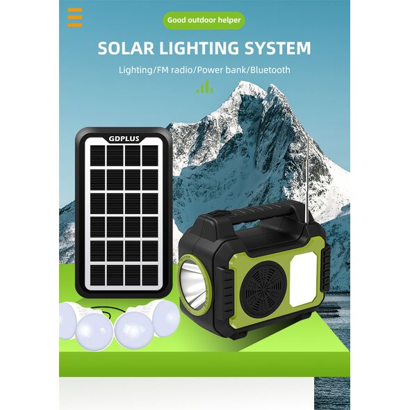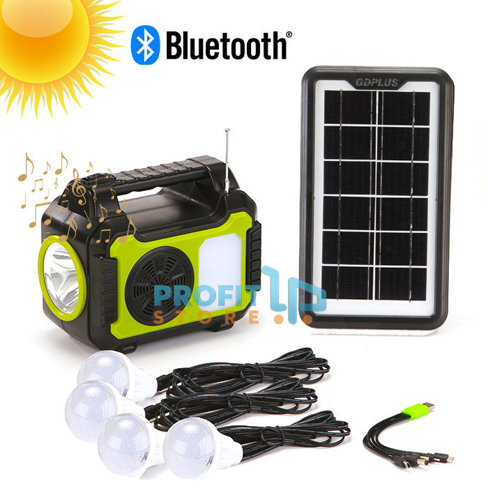 Ηλιακό Σύστημα Φωτισμού με 4 Λάμπες, Bluetooth Ηχείο, Φακός & Φωτιστικό LED, Φορτιστή Powerbank USB & Ραδιόφωνο FM GDPLUS®