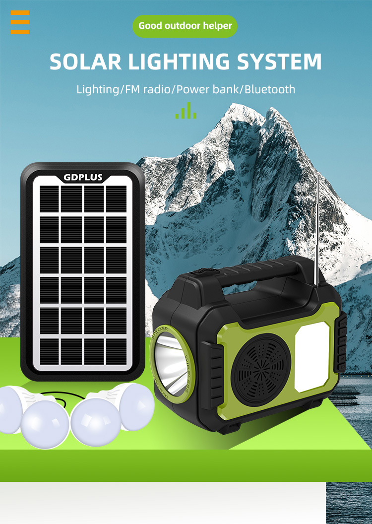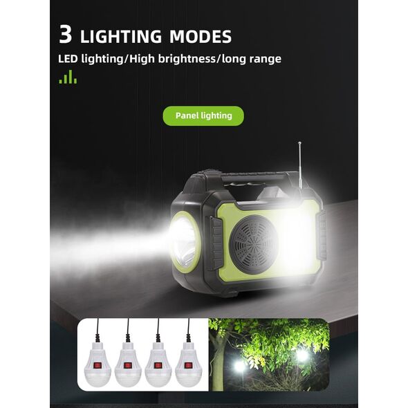 Ηλιακό Σύστημα Φωτισμού με 4 Λάμπες, Bluetooth Ηχείο, Φακός & Φωτιστικό LED, Φορτιστή Powerbank USB & Ραδιόφωνο FM GDPLUS®