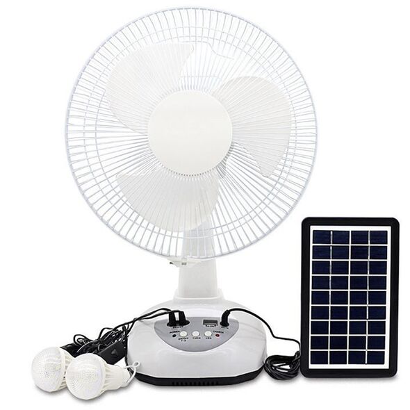 Επαναφορτιζόμενο Ηλιακό Σύστημα Φωτισμού με Ηλιακό Πάνελ και Ανεμιστήρα 12″ - GDTimes