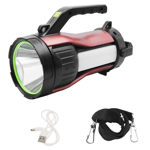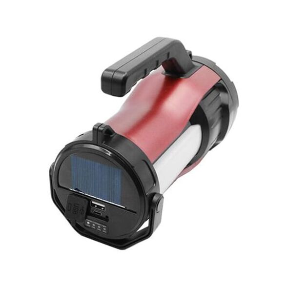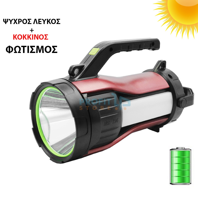 Ηλιακός Επαναφορτιζόμενος Διπλός LED Φακός 30W - Power Bank 2000mAh με Χερούλι, Κορδονάκι, Ψυχρό Λευκό & Κόκκινο Φωτισμό & 7 Λειτουργίες Φωτισμού