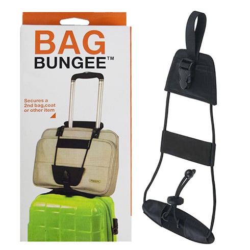 Πλέον θα τοποθετείται το μπουφάν σας, την τσάντα σας ή το λαπτοπ σας επάνω στην βαλίτσα σας και θα συγκρατείται εύκολα και γρήγορα με τον ιμάντα συγκράτησης Bag bunjee.