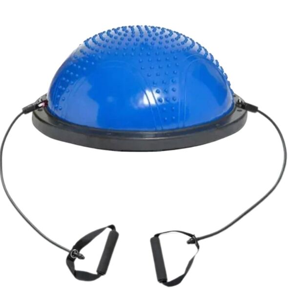 Ημισφαιρική μπάλα ισορροπίας 58 cm με αποσπώμενα λάστιχα αντίστασης και αντιολισθητική βάση. Ιδανική για ασκήσεις ενδυνάμωσης, yoga, pilates και αποκατάστασης. Περιλαμβάνει αντλία και αντέχει έως 300 kg.