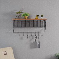 Επιτοίχια Κρεμάστρα Vintage με Ξύλινο Ράφι και Μεταλλικά Συρτάρια 84cm