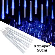 3μ Χριστουγεννιάτικη LED Βροχή Μετεωριτών 8τμχ x 50cm Μπλε Φωτισμός - Σταγόνες Σταλακτίτες Επεκτεινόμενη