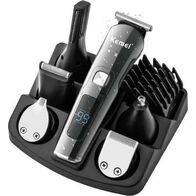 Σετ Eπαναφορτιζόμενη USB Κουρευτική - Ξυριστική Μηχανή με 6 Κεφαλές και LCD Οθόνη Kemei