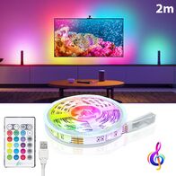 Κιτ Κρυφού Φωτισμού Τηλεόρασης που Αλλάζει με τον Ήχο 2μ USB - Αυτοκόλλητη Ταινία Διακόσμησης 5050 SMD LED RGB με Τηλεχειριστήριο 3V Φωτορυθμικό