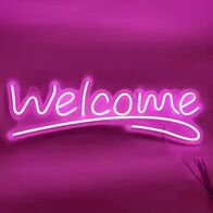 Μεγάλη LED Φωτιζόμενη Πινακίδα Welcome Ροζ με Ακρυλική Πλάκα 60cm