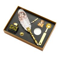 Ρετρό Σετ Πένα Καλλιγραφίας με Φτερό Κουκουβάγιας & Σφραγίδα Διπλής Χρήσης με Κερί - Vintage Dipping Feather Pen - Λευκό