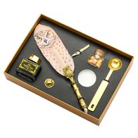 Ρετρό Σετ Πένα Καλλιγραφίας με Φτερό Κουκουβάγιας & Σφραγίδα Διπλής Χρήσης με Κερί - Vintage Dipping Feather Pen - Μπεζ