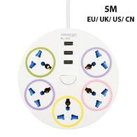 Treqa Πολύπριζο Ασφαλείας 3000W 5 Θέσεων EU/ UK/ US/ CN με Διακόπτη, 3 Θύρες USB & Καλώδιο 5 Μέτρα - Λευκό