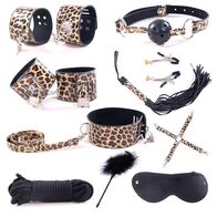 Σετ 10 Λεοπαρ Ερωτικά Αξεσουάρ Φετίχ Δεσίματος από Δερματίνη Μαύρο - Καφέ