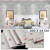 Τρισδιάστατη Ανάγλυφη Ταπετσαρία Τοίχου - Αυτοκόλλητη Γκρι με Λουλούδια - 200x45 εκ