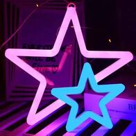 LED Επιτοίχιο Διακοσμητικό Φωτιστικό Neon με Τροφοδοσία USB ή Μπαταρίες με Σχέδιο Διπλό Αστέρι σε Ροζ και Μπλε Χρώμα