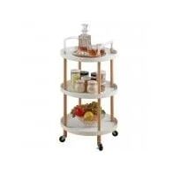 Στρογγυλή Πολυλειτουργική Τροχήλατη Ραφιέρα - Μεταλλικό Καρότσι Τριών Επιπέδων με 3 Ράφια και Ροδάκια - Στρογγυλό Τρόλεϊ Οργάνωσης Διακόσμησης σε Λευκό Χρώμα