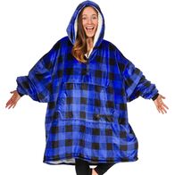 SoftHug Φλις Κουβέρτα με Μανίκια, Κουκούλα & Ζεστό Γουνάκι - Oversized Φούτερ για το σπίτι Καρό Μπλε
