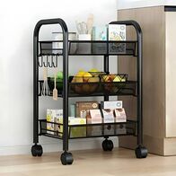 Μεταλλική Ραφιέρα - Τρόλει 3 Επιπέδων - Με Περιστρεφόμενα Ροδάκια & Γάντζους - 44 x 27 x 63 cm