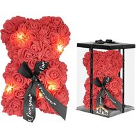 Αρκουδάκι από Κόκκινα Τεχνητά Τριαντάφυλλα με Φωτάκια σε Συσκευασία Δώρου 23 cm - Homie