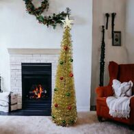 Τεχνητό Χριστουγεννιάτικο Χρυσό Δέντρο Slim 120x30cm με Πλαστική Βάση