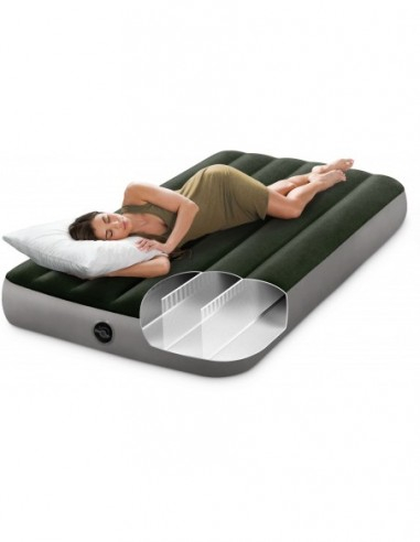 Το φουσκωτό στρώμα της INTEX προσφέρει άνετο και σταθερό ύπνο χάρη στη βελουτέ επιφάνειά του και την ενισχυμένη εσωτερική δομή που υποστηρίζει σωστά το σώμα.