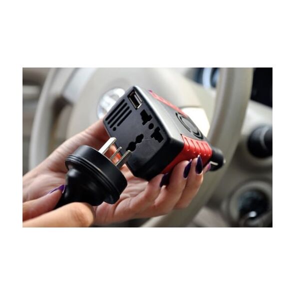Τροφοδοτικό με είσοδο 12V (ειδικό για αυτοκίνητα και βάρκες). Μετατρέπει τάση 12V DC σε 230V AC. Με αυτή τη συσκευή μπορείτε να χρησιμοποιήσετε οπουδήποτε όλες τις συσκευές σας.