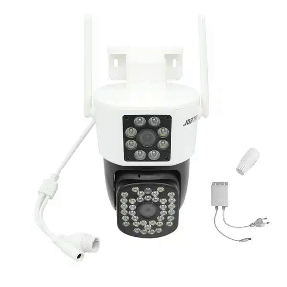 IP Ασύρματη Διπλή Κάμερα Παρακολούθησης Wi-Fi Αδιάβροχη με Αισθητήρα Κίνησης, Φακό 3.6mm και Νυχτερινή Λήψη Jortan 1080p IP66 Λευκή-Μαύρη