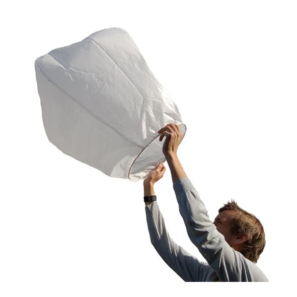 Τα Ιπτάμενα Φανάρια είναι κατασκευασμένα από μπαμπού και υψηλής ποιότητας χαρτί, επιβραδυντικό στη φωτιά. Κάθε Λευκό Ιπτάμενο Φαναράκι συνοδεύεται από ένα κεράκι και εικονογραφημένες οδηγίες χρήσης. Τα Λευκά Ιπτάμενα Φανάρια δημιουργούν μία εκπληκτική λάμψη όταν απογειώνονται στον ουρανό και ταξιδεύουν για πολλά χιλιόμετρα πριν επιστρέψουν απαλά πίσω στη γη.