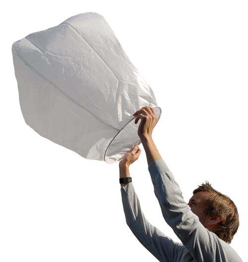 Τα Ιπτάμενα Φανάρια είναι κατασκευασμένα από μπαμπού και υψηλής ποιότητας χαρτί, επιβραδυντικό στη φωτιά. Κάθε Λευκό Ιπτάμενο Φαναράκι συνοδεύεται από ένα κεράκι και εικονογραφημένες οδηγίες χρήσης. Τα Λευκά Ιπτάμενα Φανάρια δημιουργούν μία εκπληκτική λάμψη όταν απογειώνονται στον ουρανό και ταξιδεύουν για πολλά χιλιόμετρα πριν επιστρέψουν απαλά πίσω στη γη.