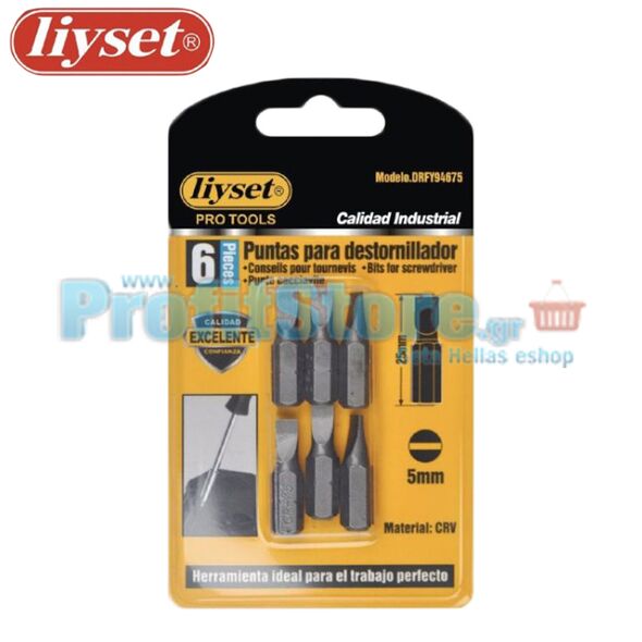 Ίσιες Μύτες για Κτυπητά Κατσαβίδια Liyset Σετ 6 Τεμαχίων 5mm