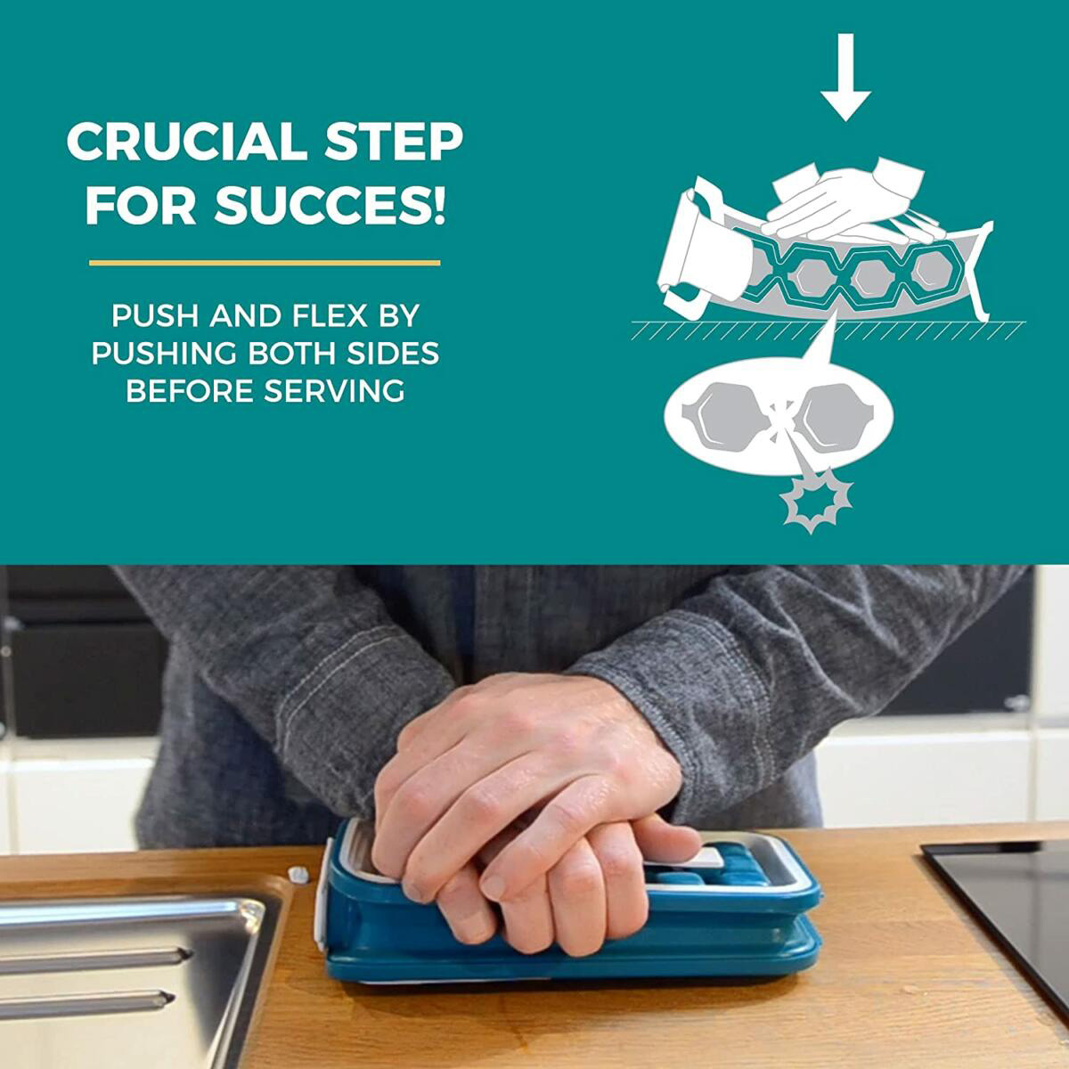 - PUSH & FLEX: Αφού παγώσει, πιέστε το έως ότου είναι εύκαμπτο