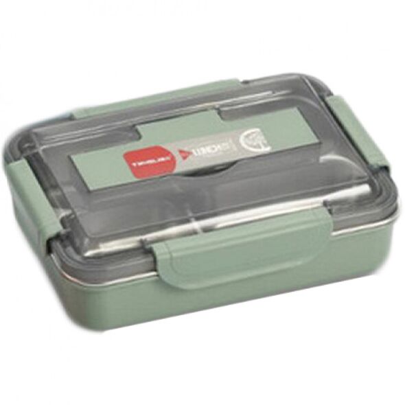 Ισοθερμικό Inox Δοχείο Φαγητού 3 Θέσεων από Ανοξείδωτο Χάλυβα με Κουτάλι και Chop Sticks Πράσινο 25.5x18.2x7.2εκ