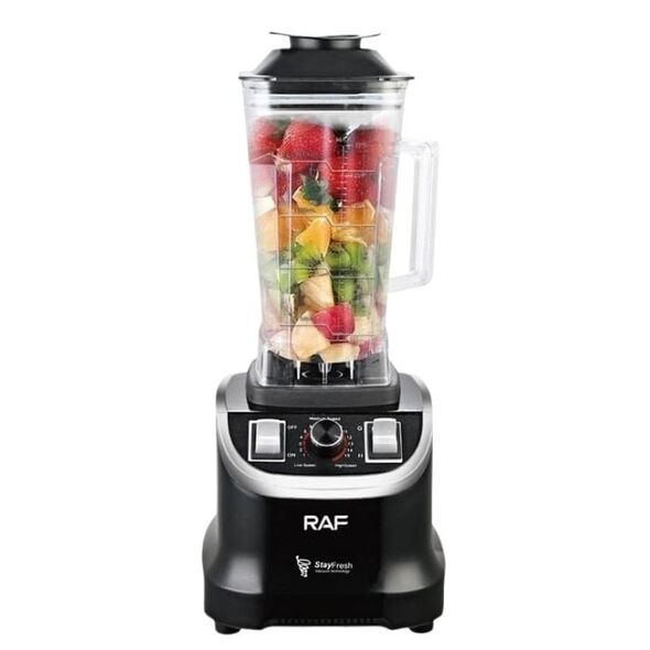 Ισχυρό ηλεκτρικό μπλέντερ RAF 1800W με κανάτα 2L και 6 ανοξείδωτες λεπίδες. Ιδανικό για smoothies, ροφήματα και θρυμματισμό πάγου, με ρυθμιζόμενες ταχύτητες και σταθερή απόδοση.