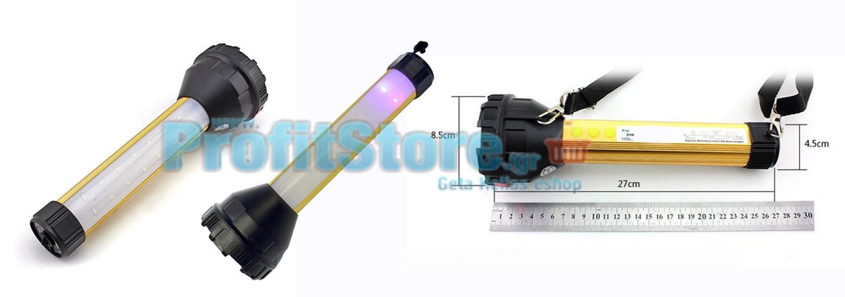Υψηλής τεχνολογίας επαναφορτιζόμενος φακός που χρησιμοποιεί για τον φωτισμό τεχνολογία Led. Διαθέτει εμπρός ένα πανίσχυρο led με μεγάλο κάτοπτρο και στο πλάι ένα φωτιστικό με 12 led που μπορεί να φωτίζει επαρκώς ένα χώρο, ακόμα και για να διαβάζετε.