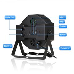 Προβολέας LED RGB ο οποίος σε συνδυασμό με κονσόλα φωτισμού μπορεί να αποδώσει οποιοδήποτε απόχρωση RGB (6 channels). Διαθέτει λειτουργίες stand alone (έτοιμα προγράμματα) και music control (δυνατότητα συγχρονισμού με την μουσική). Το απόλυτο gadget για τα πάρτυ σας.