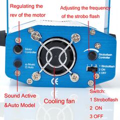 Ισχυρότατο Φωτορυθμικό Projector Show System με Laser χρώματος κόκκινο (100mW) και πράσινο ( 50mW ) αλλά και με Μπλε φωτισμό LED ώστε να χρωματίζει το Backround της επιφάνειας στην οποία προσπίπτουν τα Laser, δίνοντας βάθος και τρισδιάστατης αίσθησης!