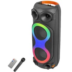 Ισχυρό φορητό ηχείο 6.5″ με δυναμικό ήχο, LED RGB φωτισμό και ασύρματη συνδεσιμότητα Bluetooth. Περιλαμβάνει μικρόφωνο και τηλεχειριστήριο για καραόκε, παρουσιάσεις και εκδηλώσεις. Με ιμάντα πλάτης για εύκολη μεταφορά. Ιδανικό για πάρτι, outdoor και επαγγελματική χρήση.