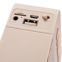 Επαναφορτιζόμενο φορητό ηχείο με Bluetooth για ασύρματη σύνδεση και βάση για το κινητό σας με ενσωματωμένο ραδιόφωνο. Διαθέτει θύρες USB, Micro SD και AUX για να αναπαράγετε μουσική που έχετε αποθηκευμένη σε εξωτερικές πηγές ήχου (στικ, κάρτες, κινητά κα).