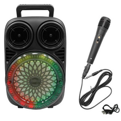 Φωτιζόμενο ηχείο LED 6.5 ιντσών μοντέλο με ενσύρματο μικρόφωνο, Bluetooth, μνήμη USB και ραδιόφωνο FM.Με μέγεθος 6.5 ιντσών, θα σας δώσει απίστευτο καθαρό ήχο για το πάρτι στο σπίτι σας.Με το μικρόφωνο που περιλαμβάνεται, σας δίνεται η δυνατότητα να φτάσετε την ψυχαγωγία σας σε ακόμα μεγαλύτερα επίπεδα.