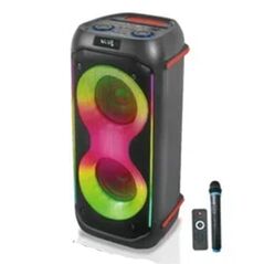 Ένα μεγάλο εντυπωσιακό διπλό ηχείο επιδαπέδιο, που συνδέεται ασύρματα με το κινητό σας τηλέφωνο μέσω bluetooth για να ακούτε την αγαπημένη σας μουσική από Spotify, Apple Music, youtube κλπ Πέρα από Bluetooth ασύρματη σύνδεση, δέχεται κάρτες microSD, USB memory sticks και εξωτερικά μικρόφωνα για karaoke ή ομιλίες.