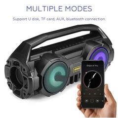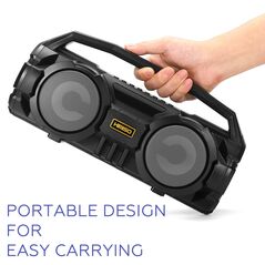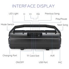 Ακούστε ασύρματα μουσική στη διαπασών με το νέο επαναφορτιζόμενο μεγάλο φορητό ασύρματο multimedia ηχοσύστημα Bluetooth, που συνδέεται επίσης και με οποιαδήποτε συσκευή ήχου και διαθέτει και μικρόφωνο για ατελείωτες ώρες καραόκε. Θα είναι σαν να έχετε το στερεοφωνικό σας συγκρότημα, παντού!