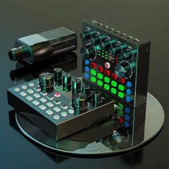 Επαγγελματικό σετ ήχου με πυκνωτικό μικρόφωνο και κάρτα ήχου για εγγραφή ή ομιλίας για studio με αναδιπλούμενη βάση στήριξης γραφείου και όλα τα αξεσουάρ μικροφώνου.