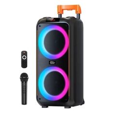 Φορητό Bluetooth ηχείο Karaoke με 2 μικρόφωνα, τηλεχειριστήριο και LED φωτισμό. Δυνατός ήχος 40W, διάρκεια 3–5 ώρες, ιδανικό για πάρτι, εκδρομές και διασκέδαση στο σπίτι.