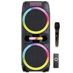 Ασύρματο ηχείο karaoke Bluetooth με διπλά μεγάφωνα, LED φωτισμό και λειτουργία TWS για στερεοφωνικό ήχο. Περιλαμβάνει μικρόφωνο και τηλεχειριστήριο για εύκολο έλεγχο. Ιδανικό για πάρτι, οικογενειακές στιγμές και καθημερινή ψυχαγωγία.