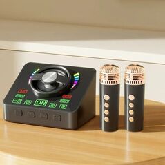 Ασύρματο ηχείο Bluetooth Karaoke με 2 μικρόφωνα, LED φωτισμό, USB & TF Card. Compact σχεδιασμός, εφέ φωνής και επαναφορτιζόμενη μπαταρία για διασκέδαση στο σπίτι ή παρέες.