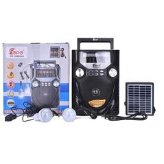 Εξαιρετικής ποιότητας και απόδοσης ηλιακό επαναφορτιζόμενο ηχοσύστημα ραδιόφωνο και Mp3 Player. Με ραδιόφωνο παγκόσμιας λήψης (FM/AM/SW), μεγάλο ηχείο, πολύ δυνατό και καθαρό ήχο. Παράλληλα λειτουργεί σαν ηλιακό κιτ φωτισμού με 2 λάμπες LED 6 Watt.